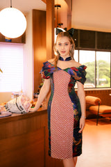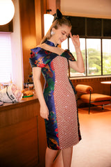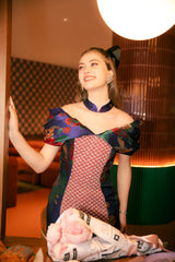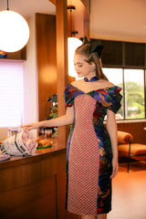 An EXCLUSIVE and LIMITED EDITION piece inspired by Elizabeth Taylor's glitz and glamorous looks through the decades. Her style evolved over the many years but one thing that remains is the sparkles on her outfits. This beautiful qipao is dripping with embellishments that sparkles at every turn. This silhuoette is complimented with pearl details on the collar, dramatic origami sleeves in brocade fabric and a slimming waistline. May this be your main look this Chinese New Year and be sure to turn heads wherever you go.