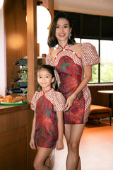 We hear YOU our darling Duchesses. We present to you our "FAMILY SET". The mini girl's version of the Grace Kelly Qipao with rose buttons. A beautiful detailed puff sleeve shift top/dress for our lovely children that matches the FAMILY SET for woman. boys and men. Only limited pieces available.