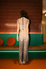 Inspired by the supermodel and actress, Brigette Bardot's style. She enjoys a more androgynous and cool aesthetic and embraces sheer material nude look. With that we present you with our sheer embellished top and pants lined with nude colored fabric. A very intricate look fully adorned with beadings and sequins. Put it on and you will feel like you are dripping in jewels. A collectors set that is perfect for a night to remember.