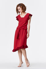 JÙ 聚/剧 NOW Scallop Skirt - Dark Red