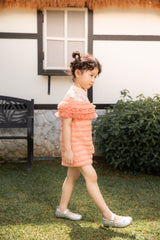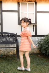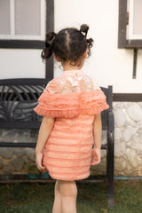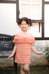 A mini girl's version of the Jasmine Qipao is a dreamy soft tulle lace shift dress with an off shoulder sillhuotte. Fret not, the little girl's version also sparkles but more subtly with rhinestone fabric as the base of the tulle. We meticulously picked out different 4 different types of lace trimmings and combined it together to create the off shoulder sleeves. We are so excited to see your precious little one look adorable in this beautiful qipao.