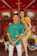 This qipao is the epitome of class. A luxuriously fitted qipao made in brocade fabric that is comfortable to wear for family gatherings or dinner with friends, a look suitable for day to night. Remember to get a matching Shanghai Men's Top for your boyfriend or hubby.