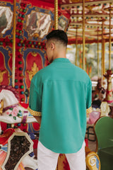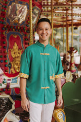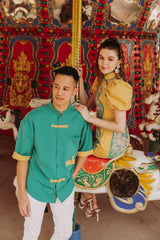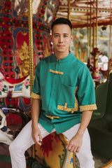 Glitterati'24 Shanghai Mens Top- Green with Yellow brocade