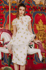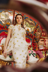 Glitterati'24 The Orient Qipao Set - White Floral Brocade