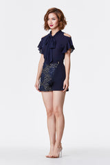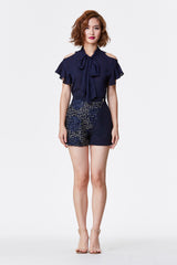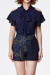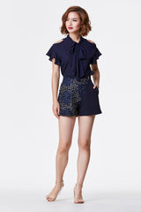 JÙ 聚/剧 Lace Shorts - Navy Blue