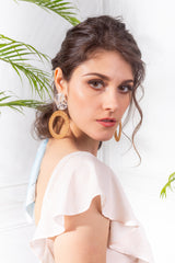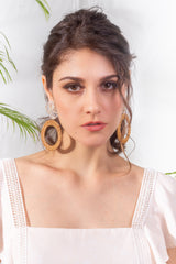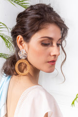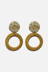 Earthy colored marbled resin stud centers highlight the handmade rattan bases on these trend-forward drop earrings.