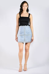 AW'18 A-Line Lace Panel Skirt - Blue