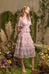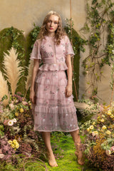 Slip into romantic style with pretty embroidered floral motif in this tiered-ruffle skirt to gather envious side-eye looks.