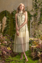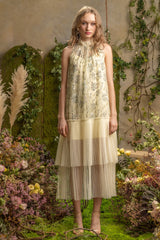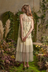 SS'19 Embroidered Mesh Pleated Maxi Dress - Yellow