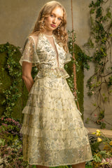 Slip into romantic style with pretty embroidered floral motif in this tiered-ruffle skirt to gather envious side-eye looks.