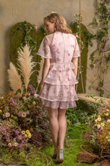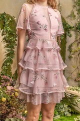 Tiered tulle is beautifully backed by embroidered florals on this delightful skirt that simply won't take cloudy for an answer.