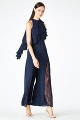 - Lace insert within darts of palazzo bottom