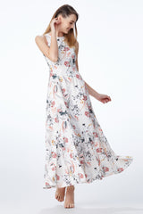A floral maxi dress or a pastel blue maxi dress that is suitable to be worn to any garden wedding. This lovely dress would flatter any body type.