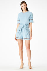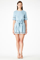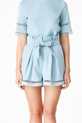Crafted with high quality drill, look smart dressed up or down in this utility-inspired high waisted shorts laced with minimalistic trim.