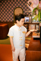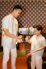 We hear YOU our darling Duchesses. We present to you our "FAMILY SET". The Connery Boy's Top is a modern take on the Samfu for Chinese New Year. Match your loved ones in this smart piece to complete the FAMILY SET for woman, girls and men. Only limited pieces are available.