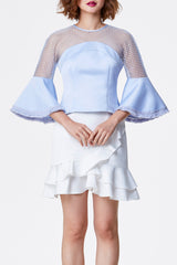 JÙ 聚/剧 Dotted Lace Top - Pastel Blue