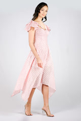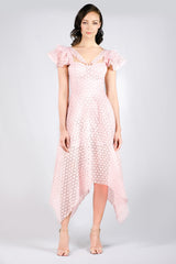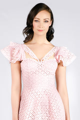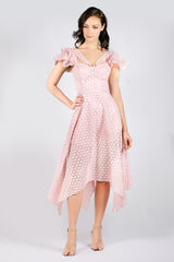 AW'18 Embroidered Lace Waterfall Dress - Pink