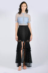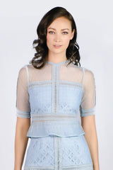 Fresh, fine and fully feminine, this lace accented top features a pretty peplum and a cool short sleeve silhouette.