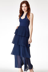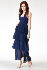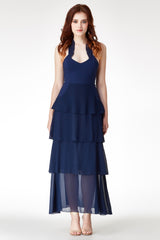 Breezy and feminine maxi dress is cut with ruffle tiers that alternate floral prints to replicate the flowers blooming all around you.