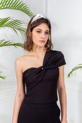 Maximise your appeal in this stunning top. This bustier features a one shoulder design and a twisted knot detail at bodice.