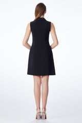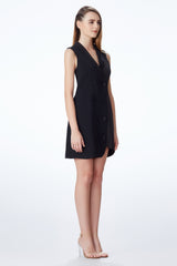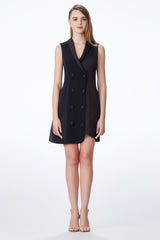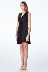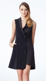 Style it two ways as a vest dress or opened as a coat, with a cami and black jeans. It is a piece that is sure to get you looking sharp and chic.
