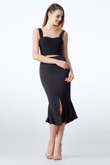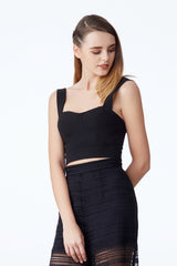 This bustier top is crafted to add an edge to any outfit. Versatile to be worn with high waisted pants or skirt for a modern, sexy yet demure look.