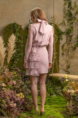 SS'19 Embroidered Side Ruffle Dress - Pink